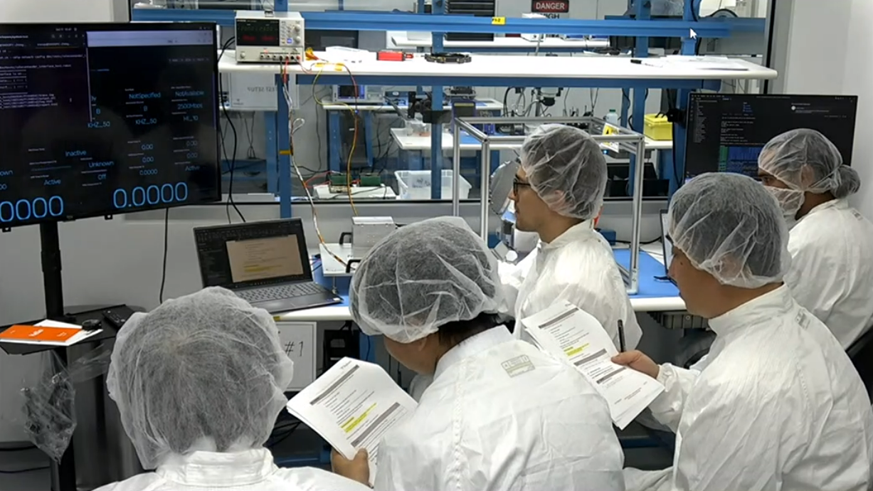 That’s me, in the center of the photo below, leading a customer engineering team through a product demonstration at Skyloom headquarters.