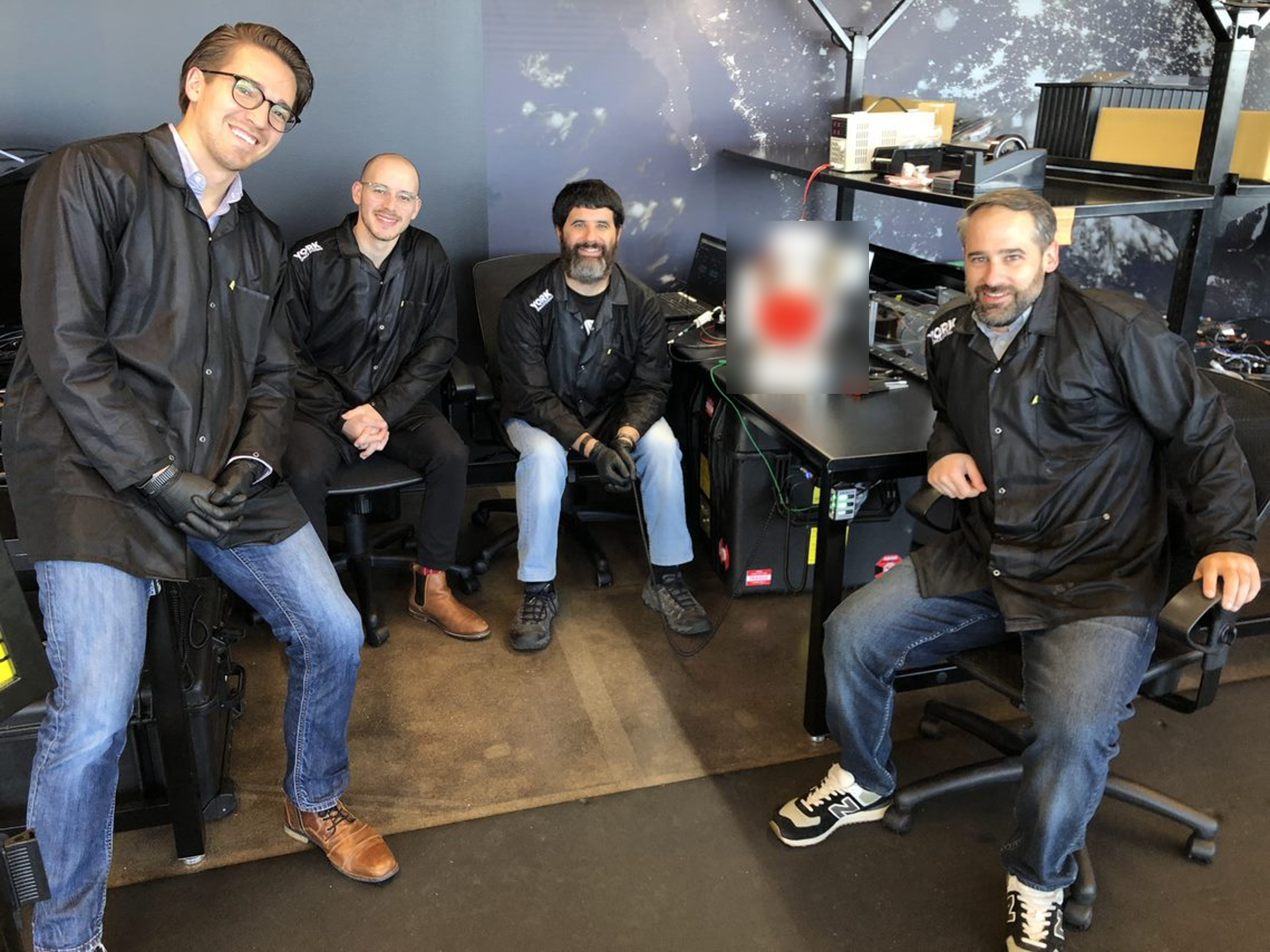 And pictured below is me, my boss and two client representatives smiling after a Skyloom product passed its acceptance testing on the client site.